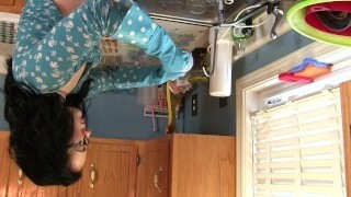 Sexy Housewife Gets Sudsy- MILF Washing Dishes in Protection Mittens Flashes