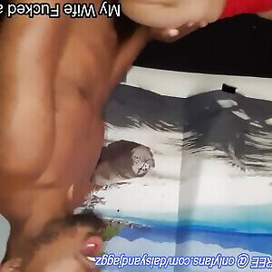 Wifey gets plumbed with cumshots by 2 dark-hued folks