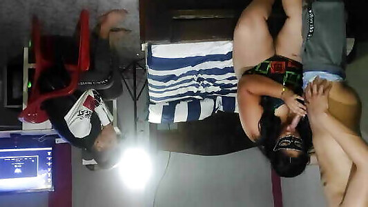 Threesome of hot Latinos fuck each other licking pussy and riding cock.