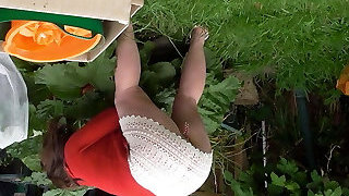 Mature milf in a long skirt engaged in anal sex