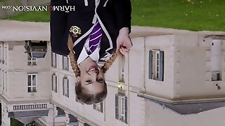 Just spoiled coed doll in uniform Stella Cox fucks with 2 strong professors