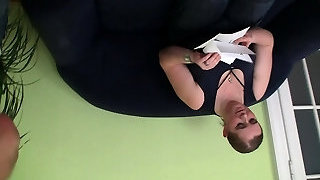 Bigtit redhead Cougar rides lil guy after pantyhose footjob