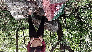 Two busty Brazilian girls share a lucky dude's cock in the garden