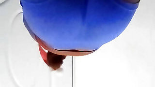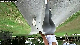 Dry humping butt polishing in spandex leggings till he cum in his underwear, back view