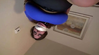 Masked BBW Girl Gives Blowjob thru Seamless Pantyhose
