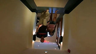 Chief has underpants pulled pulled to the side pantyhose ripped and fucked by blue collar worker