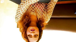 Sexy Young Babe In Tight Dress Strips Down To Her Dark-hued Pantyhose And Heels
