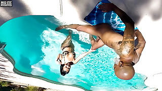 Hot Brunette Passionate Sex With Big Black Cock In The Pool!