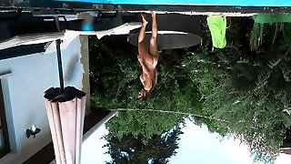 Fui pra piscina do meu vizinho e ele nã_o acreditou no meu maiô_ mostrando a minha buceta e meu peitinho duro.