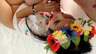 Step Mom caught Step Son with trunk and helps to cum quick on her cooch while her Husband is not hom