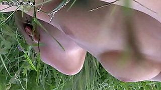 Old man eats teen woman pussy in the fields