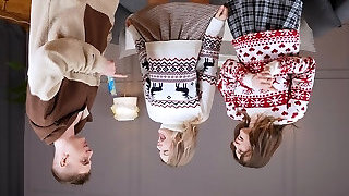 Russian MILF and Stepsister Share a Facial in Threesome Action