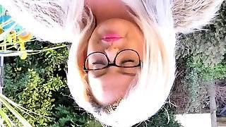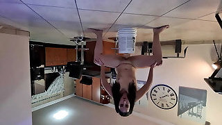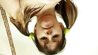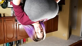 Pigtailed round teen doing the 5 minute fake penis fuck squat challenge
