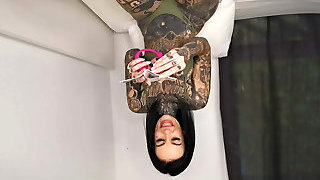 Tattoo Girl Take's Huge Buttfuck Dildo