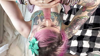 Tatted Emo Whore Throat Fucked By 2 Guys