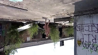 Hot exhibitionist woman having fun flashing to neighbours