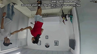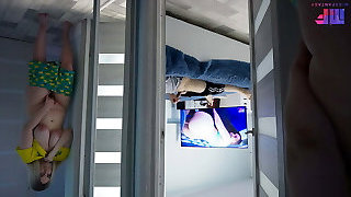 While my step sis was dressing in the toilet, I spied and dreamed to empty my balls