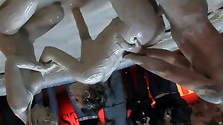 Hardcore Mud Wrestling With 2 Hot Babes